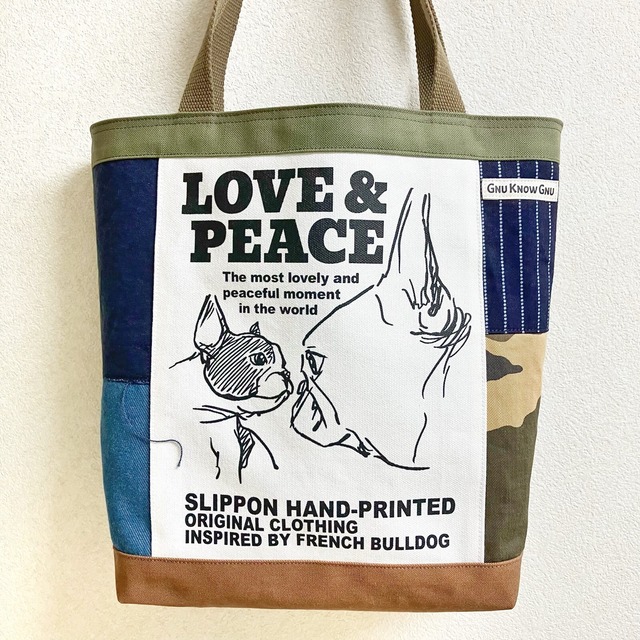 ツギハギトート ラブ&ピース フレンチブルドッグ