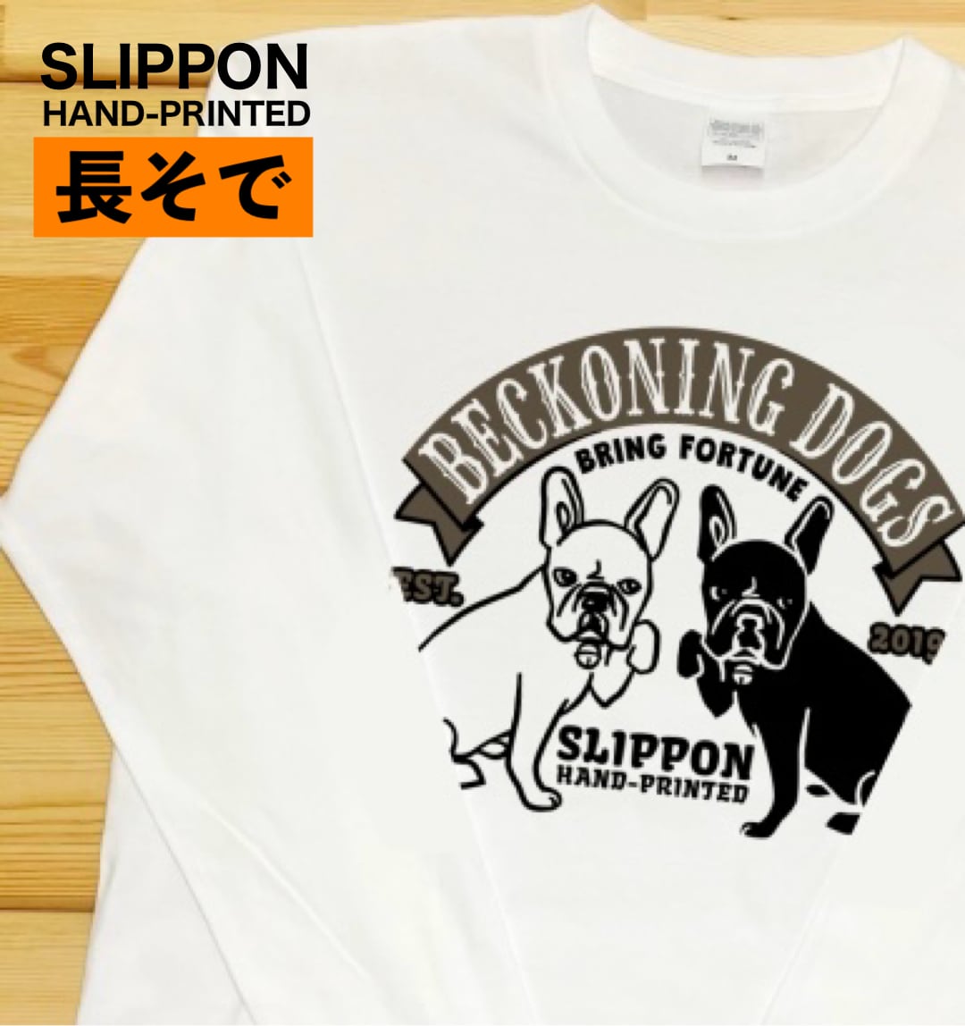 品番12050 招き犬 GOOD LUCK 長袖Tシャツ ホワイト