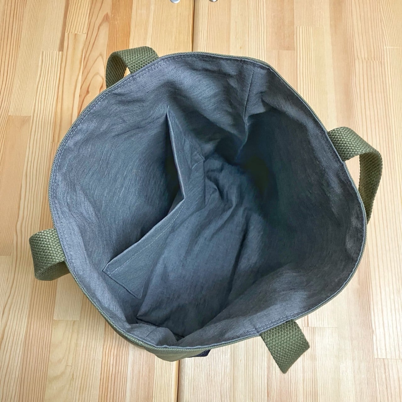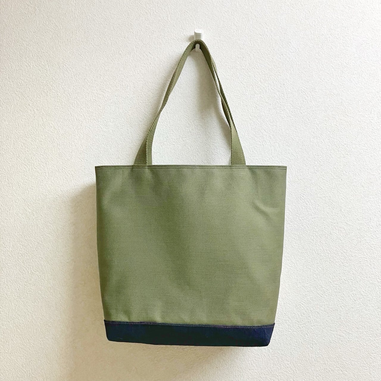※ 一部に不要となったトートバッグの生地を使用しているため最初から生地に馴染んだ感じがありますが、完成したトートバッグとしては未使用です。