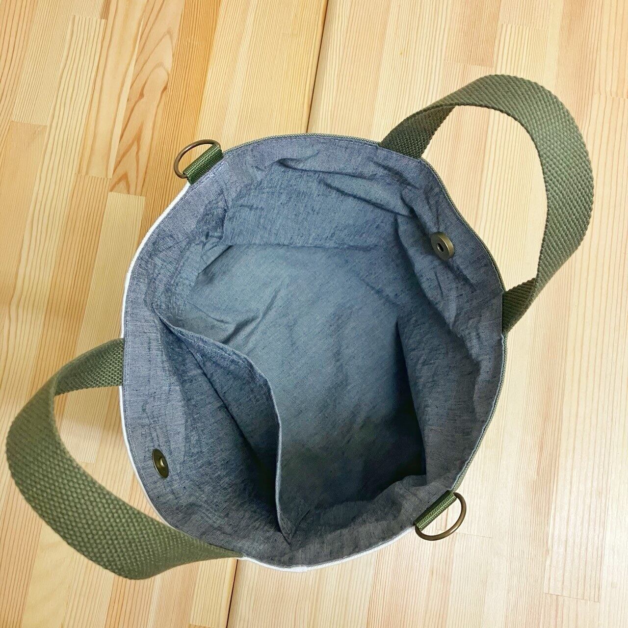 不要となったキャンバストートバッグをリメイクして小型のトートバッグをハンドメイドしたシリーズ「トートでトート」